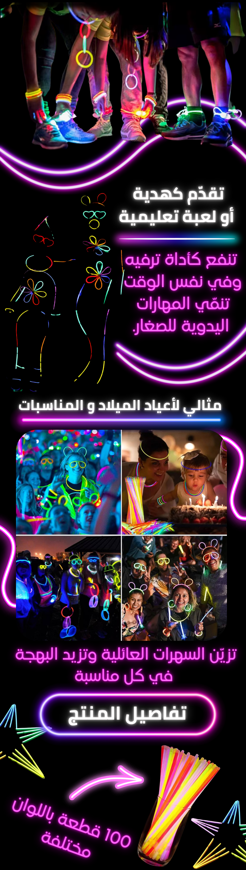 مجموعة أعواد الضوء (100 قطعة)